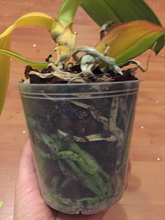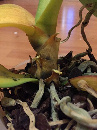 Irina2008, да ничего уже сделать нельзя, видно, что растение гниет от корня... Ваша ошибка, что не пересадили сразу после покупки. У всех покупных фаленопсисов под "попой" лежит кусок поролона или мха, его надо обязательно убирать. Об этом уже столько писалось/говорилось. Изучите тему, купите новый фаленопсис и растите с учетом советов и рекомендаций. Постарайтесь выбрать не залитый цветок, желательно из свежей поставки, и сразу! пересадите.