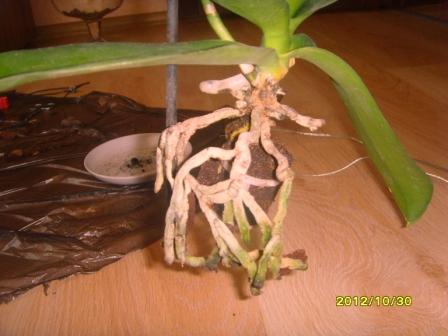 Помогите, пожалуйста!!! Купила уцененную орхидею без цветов, начала пересаживать и обнаружила вот что. Подскажите, как действовать, чтоб спасти ее. Можно ли срезы удаленных корней обрабатывть фурацилином, зеленкой? Хотелось бы получить совет именно по моему случаю. Спасибо.