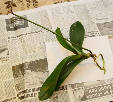 Ну, вот. Прошло три месяца... Отчёт, что имеем ?.. Пока живы... Уже хорошо. Правда два верхних листа вяленые, т.е. с тургором распрощались. Всё растение похудело - мы из Бухенвальда... Из корней остался только самый короткий, не растущий и один длинный, но без мясистой оболочки, только жилка. Не пойму, живой он или нет, вроде упругий, жёсткий, но не ломкий. Пока оставил. Что из достижений... Проклюнулся и вылез наружу маленький новый корешок. Сегодня обнаружил, что из глубины розетки лезет ещё и новый листик. На стебле видны намечающиеся шишечки, из которых ещё должны вылезти новые корешки... Что делаем ? Сидим на влажном мхе, в полуоткрытой тепличке. Опрыскиваемся каждое утро изнутри по стенкам теплицы, чуток на листья и на мох, чтоб не высыхал. Раз в четыре дня купаемся в растворе комплексного орхидного удобрения и хелата железа. Не добрался до магазина, чтоб мочевину купить. Когда брал хелат, мочевина была только в мешках по 20кг. Многовато для моего страдальца... После ванн типа "горячий душ". Около 40 градусов на 2-3 минуты. Сохнем и обратно в мох... Вопросы... Медленно процесс идёт. Как бы ускорить, если можно ? Растёт, но худеет, т.е. ствол, розетка листьев раньше были пухлые, а сейчас чуток поужались, уменьшились в объёме. Как бы откормить ? Кладу только ствол на мох и корни обкладываю. Надо ли, чтобы листья тоже на мху лежали ? Когда можно думать о посадке в кору ? Всё ли делаю так ? Заранее спасибо