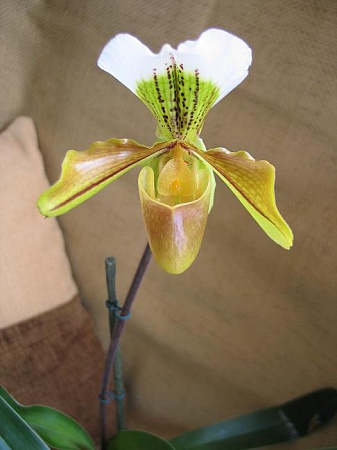 И еще вопрос Стоит ли пересадить вот этот башмак? Или лучше просто к палочке привязать? Шейка не касается почвы.