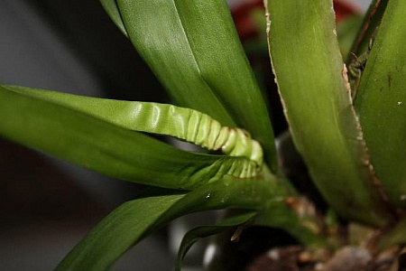 Скажите, пожалуйста, что с моей камбрией. Вылазят вот такие листья. Она кажется остановилась рости, а я дернула за листочек, а он вот такой