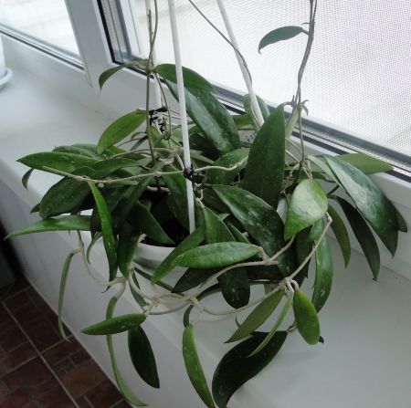 Cveto4ek, У меня тоже аналогичная пакость сидит с названием H. meliflua. Черенок был приобретен на заре моего хойеманьячества, кажется, на ВВЦ. Хойеводы тех времен помнят, что поставки были в основном из Дании. Думаю, что и мой чер оттуда. Сидел он лет 5 одним узлом с одним листом, не рос и не помирал. Только в это лето начал расти. Кто он на самом деле - а бог его знает. Расцветет - посмотрим.