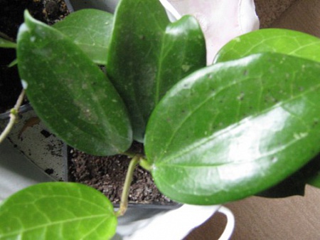 Была куплена в обычном магазине с этикеткой хойя-микс. Первое цветение. Листья небольшие, округлые, шершавые снизу.