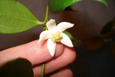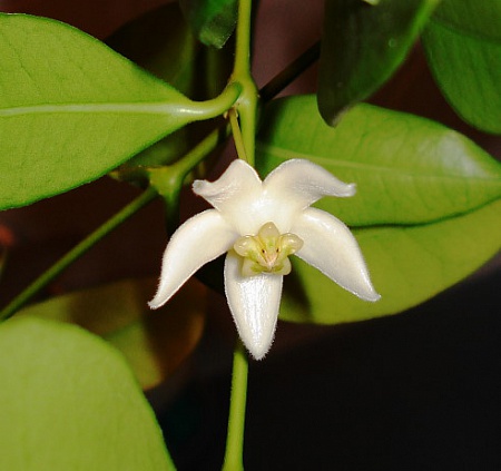 Сидит в горшочке диаметром 10 см, длина плетей около 50 см. Цветок пахнет жасмином.
