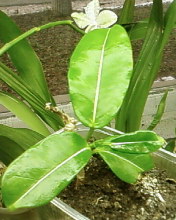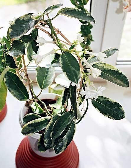 Купила в магазине маленький стефанотис,через неделю подруга принесла свой,но у них обсолютно разные листья и теперь у меня подозрения,что магазинный-это хойя.У подруги листья с белой центральной жилкой,а у покупного лист полностью тёмно-зеленый.Или это просто другой вид?