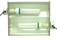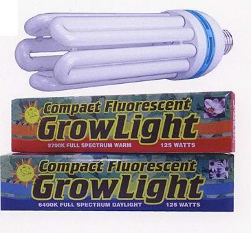 На фото хорошо видно, что одна лампа на 2700К, другая на 6400 К. Сочетание неплохое, но маломощное. Примерно на 4 небольших растения, если добавить рефлектор. Но таких ламп в Москве в продаже нет. Максимум, что видел на 85 ватт, такого вида. Что касается 125 ватт - это реальные 125 люминисцентных ватт. Если сравнивать с лампой накаливания - это где-то примерно 500 ватт.