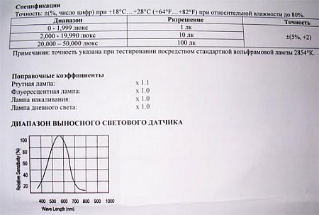 Просто я не видел этой таблички и кривули к прибору, а предполагал именно это-прибор дает измерение для максимума видимости человеческого глаза(570нм). Измерения прибора зависят от цветовой температуры по кривой Гаусса с пиком в 570 нм, как видно из диаграмки к прибору. На примере это значит следующее, например: для монохромного источника света с длиной волны в 650 нм прибор покажет 70% от реального излучения, стало быть поправочный коэффициент должен быть равен 100%/70% 1,43.