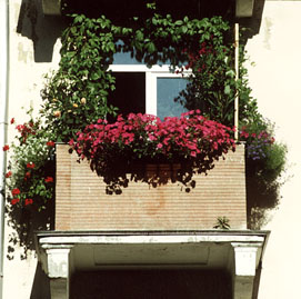 за благоустройство балкона. Балкон совсем небольшой. Поэтому основной акцент был сделан на вертикальное озеленение. Из купленных реек, распиленных и покрытых пинотексом, была сооружена обрамление-опора для вьющихся вокруг окна. Идея моя, спасибо мужу за помощь. Посадила девичий виноград. С другой стороны пассифлору голубую, выращенную из семян и поэтому еще не цветущую. И 2 ипомеи. С ящиками на перилах эксперимент был не особо удачный. Вербена не слишком плотная и кореопсис как-то не очень понравился. Зато алиссум белый красиво свисал и был декоративет все лето. В подвесном кашпо - красная петуния и лобелия. В общем, ничего для первого раза.