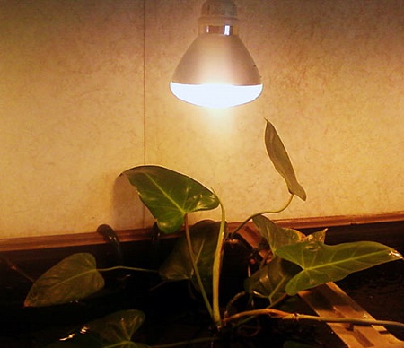 А что в этом плане могут дать светодиоды? Их свет почти монохроматический. Длину волны можно выбрать любую. Вся энергия тратится на нужный красный и на нужный синий. Никакого лишнего тепла (кроме того, что "снаружи" преславутого КПД), выделяться не будет! То есть - это практически идеально-холодный свет для растений.