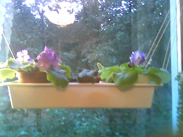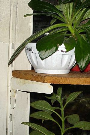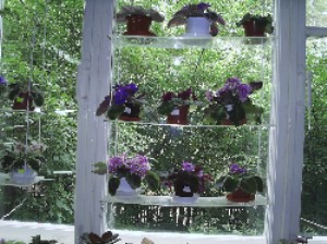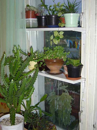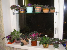 У меня в большой комнате на 3х-створчатом окне есть маленькая стеклянная полка для фиалок. Куплена в магазине, где водятся всякие зеркала и изделия из стекла, держатели тоже куплены там же, крепятся с помощью шурупов. Так как окна деревянные, то полку ставила сама - легко и быстро. При мытье окон полка легко вынимается из держателей