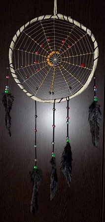Ловец снов — индейский оберег, защищает спящего от злых духов. Плохие сны запутываются в паутине, а хорошие проскальзывают сквозь отверстие в середине. Представляет собой паутину из суровых ниток и оленьих жил, натянутых на круг из ивовой ветви; также на нитке вплетают несколько перьев. Вешают над изголовьем спящего.