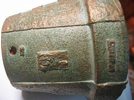 Берем краску другого цвета (мы взяли серо-зеленоватую) и неравномерно наносим. Сушим. Затем металлической губкой сдираем часть серо-зеленой краски, чтобы создать эффект "потертости".