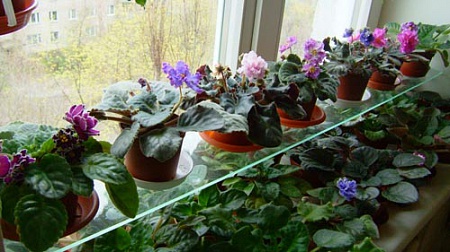 Так растут фиалки на кухне, жаль, что пока еще не зацвели