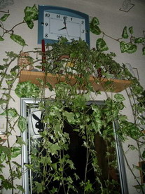 2) На заднем плане окно, затянутое жалюзи. Над растениями лампа, да и растения стоят так, что не подберешься? Жалюзи выглядят, как никогда не открывающиеся. Это так? Весь уголок живет при искуственном освещении?