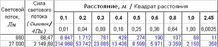 Извините, что вмешиваюсь. Просто я имею особую любовь к различного рода расчетам и тоже не раз проводила вычисления и измерения по инструкциям с сайта . И так же сталкивалась с проблемой определения освещенности фотоаппаратом, но тут были другого плана трудности. Всё никак не могла понять, как же рассчитывается освещенность, исходя из квадрата расстояния от лампы, теперь вижу: