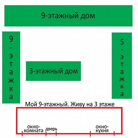 Добрый день, форумчане! Может немного не в тему мой вопрос, но все же.. У меня лоджия, длинной около 7 метров, шириной в метр-полтора, тянется на кухню и комнату. Вопрос в чем - выходит лоджия на улицу, где три дома, мой четвертый, создают эдакую коробку (схему приложила). + напротив нас всередине коробки стоит трехэтажное здание. Она мои выходят на юго-запад. Зимой бывает ооочень мало света попадает, зимой на балконе живут только гераньки и каланхоэ. Скажите, как вы увеличиваете кол-во света зимой? Я сначала стены и подоконники обтянула фольгой. Год прошел, понаблюдала, что фольга нужна только на подоконниках между лоджией и улицей, и между комнатой и лоджией. Какие могут быть еще варианты, без выведение светильников и розеток? И еще по-ходу один вопрос - лоджия у меня застеклена, евроокна, двойные стекла, утепление не большое есть, но поскольку муж курит там постоянно, и зимой особенно, то тем-ра на лоджии колеблется около 8-10 градусов при уличной -5, -3. Если морозы до -25 - то минимальная тем-ра лоджии -2 градуса. Почитала эту темку, решила сделать мужу нагоняй и оставлять после перекуров двери на лоджию открытые (муж у меня хуже фикусов и спатиков не терпит сквознячков ) Может вы что-то посоветуете, уважаемые знатоки?