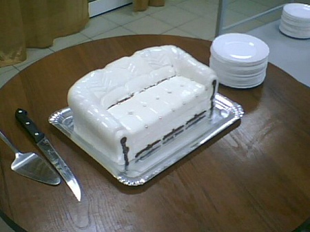 Может быть будет просто кому-то интересно. Были на день рождении знакомого и ели такой вот торт! Он владелец мебельного салона, вот и сам получил в подарок съедобный диван Кстати торт был очень вкусный