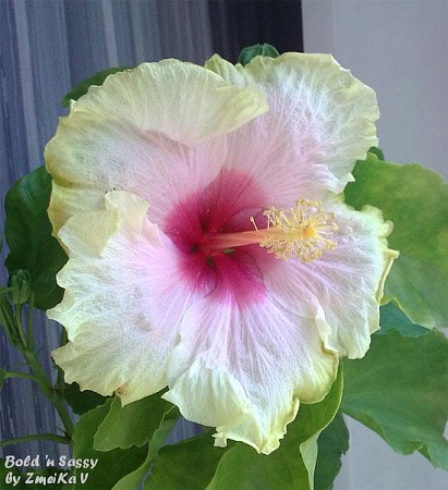 Bold 'n Sassy распустил первый цветочек, жаль только, что он стекла немного касался не уследила пока бутон распускался, думала, что цветок будет лимонного цвета лепестки снаружи действительно были лимонного оттенка