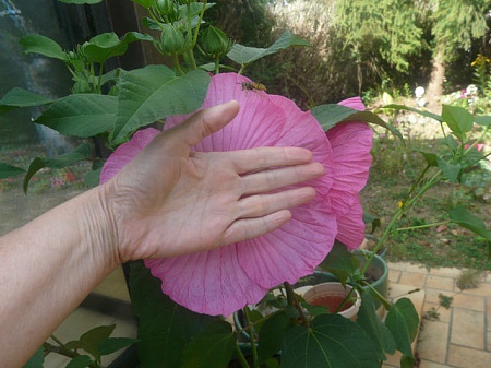 Дамы, обалдеть какие красивые у вас гибискусы. А я покажу свою крошку от Вильямс прошлогоднего цветения . Ничего не могу с собой поделать: люблю гигантские цветочки.