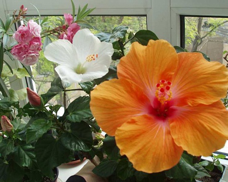 Lorik, Лор, на самое олдовое, что нашел у себя - один из безымянных аргентинских гибисков. Отличился неуемным ростом, лошадиным здоровьем и легкой 100% укоренямостью черенков. Еще варианты подвоев (теория): 1. Наш советский безымянный "китайский розан", всем хорошо знакомый с детства по публичным местам - от Универсамов до холлов поликлинник и библиотек. С махровыми пунцовами цветками. Он тоже неубиваемый и уже ко всему привычный, столько поколений растет в самых немыслимых кошмарных условиях. Но такого у меня нет. 2: Эль Капитолии. Тоже мне кажутся очень надежнымим, т.к. недалеко ушли от видовых. Опять же, легко укореняются - есть возможность за год "настругать" с куста и вырастить кучу подвоев. 3. И, собственно, сами видовые. Сейчас вот шизапеталус обрезал, хочу переукоренить. А на старые коряги напрививать всяких модностей. Сделать мульти-дерево. Но для этого придется Иннку разорить на черенки Во имя науки, во благо продолжения эксперимента Типа, моя хата с краю