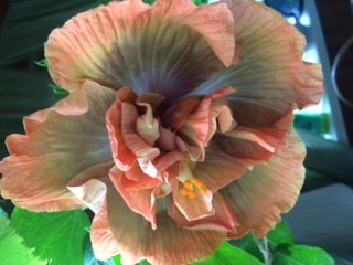 Моя новинка, Moorea Princess Oksana, цветет под лампами, оч понравился, не смогла точно передать всю красоту темного бархатного цвета шоколада, кирпичный по краям переходит в персиковый, красотун и похоже цветун