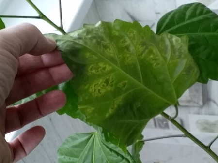 Пару недель назад некоторые молодые листья стали желтеть (не много). Но появилось множество бутонов. Почти на каждой ветке по 2-3 шт. Первый бутон лопнул, начал распускаться, но остановился. 3 дня спустя бутон отвалился не распустившись. Остальные бутоны замерли как-будто. Резко на некоторых листьях появились сухие белесые пятна (все на фото). На паре листьев дефекты, как …. пупырки какие-то.