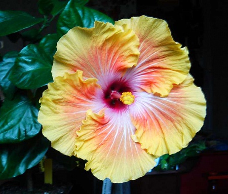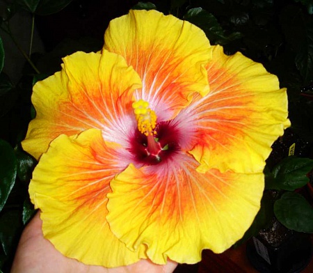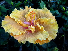 . Я вообще то не очень увлекаюсь коричнецветковыми сортами, но эта лапочка сразила меня своим теплым карамельным цветом с вишневой серединкой, розово-сиреневыми лучами из центра, которые постепенно переходят в золотистые, и золотистыми же мазками на сборках лепестков