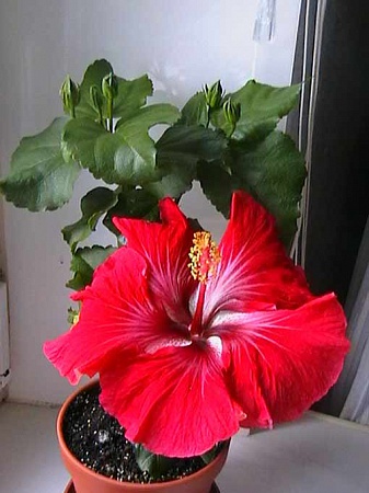 . Она не просто red, а прямо темно-алая, аж горит на кустике, и бутонится отлично