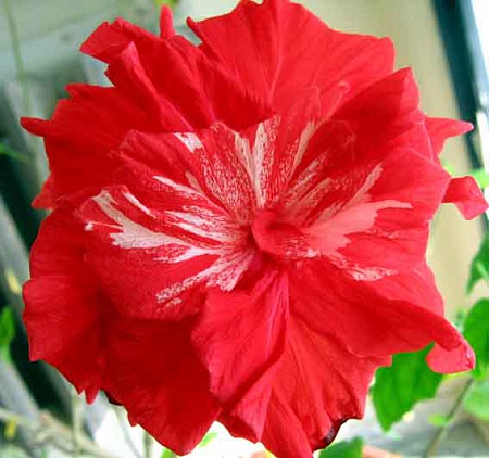Как интересно! Совсем не разбираюсь в сортах гибискусов, поэтому сейчас полезу смотреть, на какой такой сорт похожа наша "дворняжка". Дело в том, что я сама высаживала гибискусы в эти вазоны, и потому знаю совершенно точно, что все эти растения - потомки одного и того же светло-красного махрового экземпляра. Кстати, этот экземпляр цвел только в ранней молодости, а теперь - дуб дубом, и цветут за него его черенки, а он - никак. Юлиана, очень может быть, что все эти изменения не могли не возникнуть в таких условиях. Вазоны зимуют на лестнице третий раз, и две зимы до того не цвели вообще, а сейчас, видимо, приспособились и вытянули даже зимнее цветение.