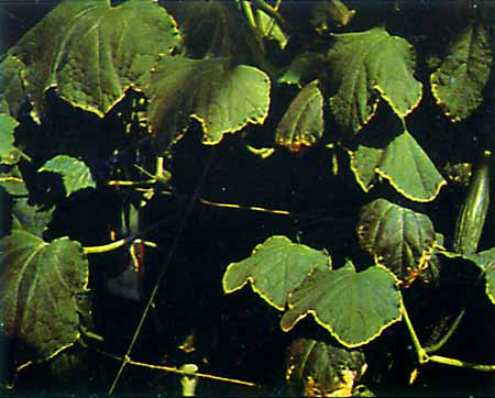 Покопалась в инете. Нашла вот эти фотки. Что-то общее, без сомнения, есть.. Пожелтение и усыхание начинается именно по краю листа, распростаняется на весь лист.