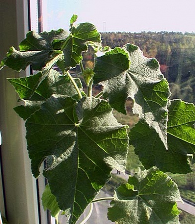 Виноград, вроде тоже - не тот у нас климат. А семена абутилона я год назад покупала и сажала. Тогда они не взошли. Я подумала, что возможно, это они. У меня уже третий год табак всходит, однаждый посеянный.
