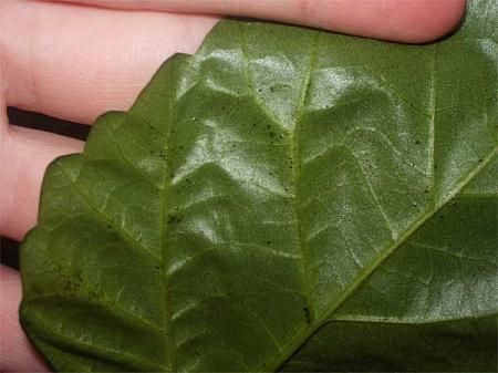 Иногда точки-наросты появлялись время от времени, но на совсем старых листьях, которым в любом случае пора было опадать.