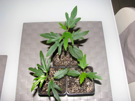 Мира, поживают хорошо, вымахали по метру высотой, листья верхние уже не такие резные, но пока не процвели, переукоренила верхушки, буду ждать цветов уже в следующем году