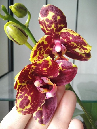 В ноябре получила из Тюмени P. GW Green World Snakeskin от Мики. Растение пришло крепкое. Зацвёл сейчас, спустя полгода, недавно перенес пересадку из мха в кору.