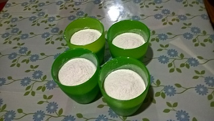 Теперь берем сухую смесь и делим ее на 4 равные части. Особая точность не нужна, с аптекарскими весами бегать не надо.