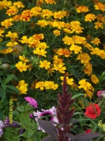 у вас высокие бархатцы, им питательной площади больше надо... действительно распикировать лучше будет... вы где проживаете? бархатцы действительно заморозков боятся... но я высаживаю в ОГ в середине-конце мая, мои выдерживают... у нас на юге Тульской области ночные заморозки возможны до 7 июня, клумбу с бархатцами ращу уже лет 6... ни разу от заморозков они не страдали, но я закаливаю... у меня квартира прохладная и я рассаду на застеклённый балкон начинаю выносить, когда дневная температура на нём достигнет 5-8 градусов... моя рассада в ОГ иногда перебаливают не от холода, а от избытка солнца... балкон северный, до сего года подсветки не было, привыкают к тени, а клумба солнечная...а в целом с бархатцами никогда трудностей не испытывала, очень неприхотливый и благодарный цветок...хотя, мне лично, больше низкорослые сорта нравятся, они намного наряднее и аккуратнее смотрятся как по одиночке, так и в группе... а высокорослые лучше группой сажайте...