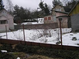 На нашем участке снега совсем мало в отличие от соседей, но только благодаря тому, что снег в течение месяца регулярно вывозится с участка. Розы на этой, ближней даче сегодня распаковала: они были засыпаны землёй полностью. Но, после удаления земли обмотала их спанбондом. Как ни сохраняй розы, а у меня к весне остаётся зелёных веток см 15 от земли, остальное чёрноо-коричневое... Сняла лапник с новозеланских дельфиниумов; они зиму пережили и даже показали зелёненькие головки. Лапник сняла, зато закрыла их 6-ю слоями спанбонда: боюсь, что от многократных заморозков, они могут околеть. Каждый раз, подходя к этим замечательным цветам, с благодарностью вспоминаю Lusi . А вот фото с нашего участка - за нами соседи, которые снег не убирали .