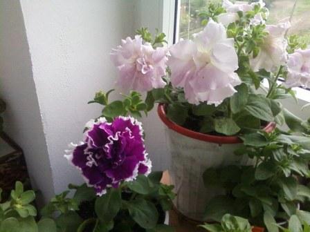 Мои петуньки две недели назад уехали на ПМЖ. В большинстве своем куцыми кустиками. И за две недели приобразились так Надеюсь, я вам еще не надоела со своими балконами