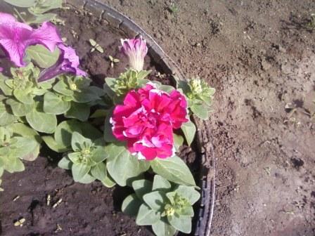 Я ее уже люблю Махровая сурфиния радует как никогда, вроде и кустики маленькие, но цветет вовсю: