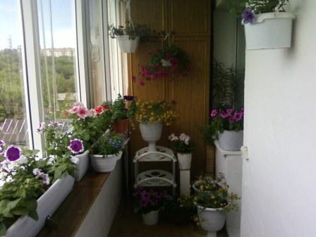 немного фотоотчета. с балконовых и дачных полей... кстати, я зимой обещала показать конструкцию по типу трехярусной петуниевой пирамиды для дачи. папа сварганил из напольной вешалки. даже две! одна дома (там видать на фотке). на даче пока лысоватенько, посажено в ведра (жаба задушила на большие тазы разориться, уж в след году купим). сейчас вижу, что высоковата она, да и расстояния большие между ведрами, хотя... мож и разрастется все.. внизу разбита клумба - несколько кустовых махрушек, лобелия, овсянница. все еще пока мелкое... позорный забор хочу закрыть вьющейся ипомеей. ах, мечты-мечты....посмотрим что будет в середине лета.