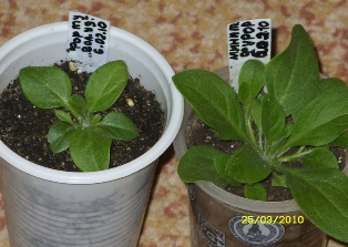 уважаемые форумчане! это мои впервые "растимые" фортуния "Волна удачи" (самая крупная из четырёх) и минитуния "Фурор" в сравнении... обе посеяны 6.02.10... фортуния росла ооооочень медленно, недружно, кособоко как-то, но сейчас начинает набирать рост... все 5 минитуний очень дружненькие и крепенькие, как братья близнецы... у всех условия роста совершенно одинаковые...вопрос: фортуния всегда так медленно и вразнобой растёт или это я что-то не так делаю?