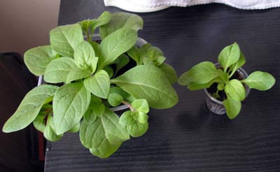 Вот так выглядят мои петунии на балконе, таких 35 штук (ой, куда мне столько!). Это временные горшки, понятное дело. А сколько еще по подоконникам маются... Расти не хотят, некоторые по 2 малюсеньких настоящих листочка, а их родные братья-сестры просто орлы! Кстати о полнолуниях - категорически ничего не утверждаю, сею, когда захочется, но как тут определишь, если из одного посева петунии такие разные, просто диву даешься!