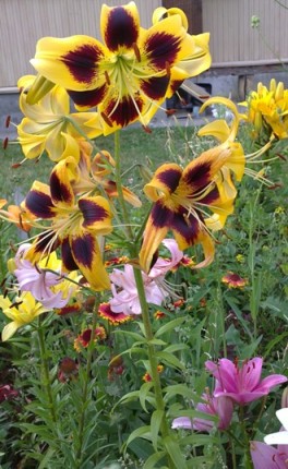 Несколько Киреевских и еще один пересорт. Покупала как Black Jack, но это точно не он - высота всего 40см. Однако, очень симпатичный бордюрный сорт!
