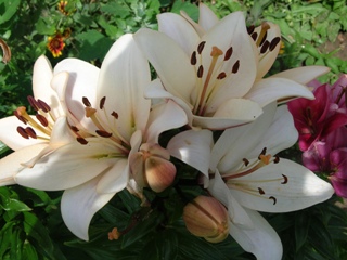 А я в прошлом году (после того, как набралась пересорта в Сотке, Поиске, Флосе, Ашане) купила 2 лилии в Подворье на Сущевском валу - цветущие в больших горшках (помню как сейчас, по 65р ). И это был самый лучший выбор, вот они какие красавицы - Anna Theresia и Pink Twinkl: