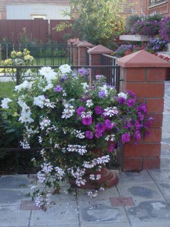 А у вас всё ещё цветёт Эх...у меня в живых только пеларгоши и черенки петунек. Кстати забыла вам показать, какой микс я сляпала в этом сезоне. Сейчас в нём осталась только плющелистка, петуньки дали дуба В составе плющелистная пеларгония, махровая сурфа, суперкаскадная белая и лиловая махрушка. Вообщем натыкала оставшихся дохликов, а получилось не плохо мне кажется. У вас такие фотки классные! Так захотелось что-нить и мне показать)))) хоть один старенький микс))