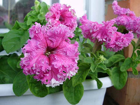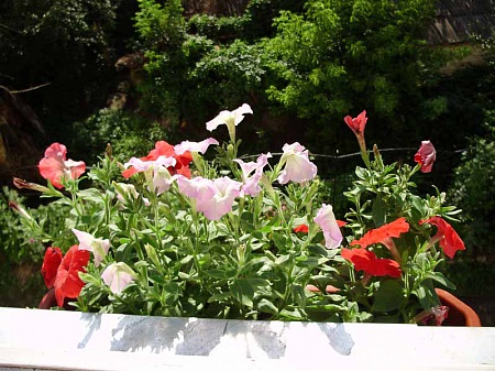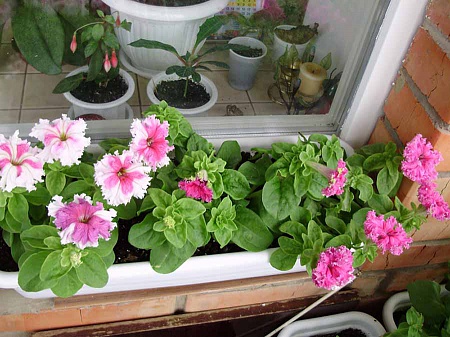 Петунии я выбрала неудачно по сорту, они для балкона не совсем подходят, вытянулись, и опыта в уходе было маловато, зато на улице у дома эти же петунии выросли в роскошные кусты.