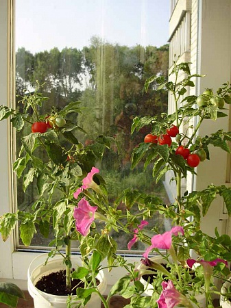 Помидоры мне уже дали ростки, потому какие они-не знаю, чувствовали они себя прекрасно, я их для живописности растила.А вот насчет штор или жалюзи это для меня сейчас вопрос №1, было без штор в прошлом году.Я натянула сетку думала растения притенят, но место было самое жаркое,все горело. в этом году сетку перенесла просто на стену, уж очень хочется кобею попробовать.