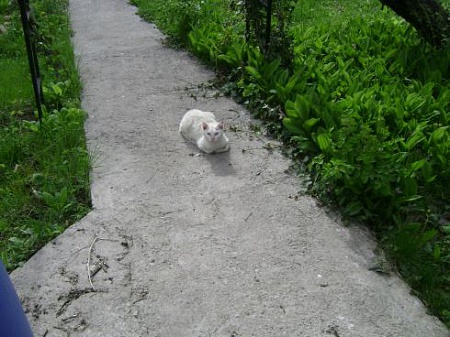 И наконец-1 из 3 соседских кошек,которь1е кормлю-Белая,черная и СЕРАЯ (и 2 собаки)