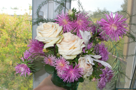 Лютик, завидую белой завистью на твои циннии Третий год выращиваю из разной кучи семян, обещающих разноцветье цветка, а зацветают самого обычного цвета В этом году уже рыкнула на них в сердцах (на циннии несчастные, которые, конечно, неповинно стараются цветут своей фуксиево-розовой головкой) Вроде вот и много всяких цветов у меня в саду, но за здешними красотами не угнаться, не хочется что-то повторяться обычными цветочками,. хоть и прекрасными, подарю вам всем, таким уже кажется хорошо и близко знакомым мне букетик, скромно надеясь для приятности вашим глазкам.