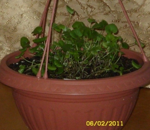 У меня с дихондрой явно терпения не хватит. Romashka_new, да, есть они ампльные и кустовые. Кому понравилась композиция с дихондрой советую купить ее уже взрослую или с черенков, ведь она размножается по разному. Светик,у тебя уже красавица, а сколько их в вазоне сидит? может добавишь пару черенков по бокам и будет шторка красивая, до лета разрастется.
